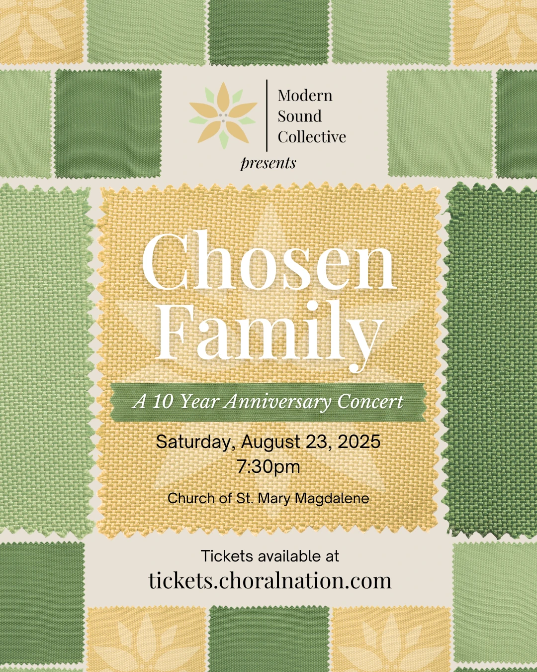 Join us for a powerful evening of choral music celebrating 10 years of community, creativity, and collaboration. Chosen Family brings together singers from across MSC’s programs both past and present for a heartfelt concert that celebrates the relationships we build through our music-making.